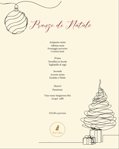 Un menù ricco e genuino, che unisce sapori classici e atmosfera natalizia, accompagnato da vini selezionati e dal calore della nostra accoglienza.